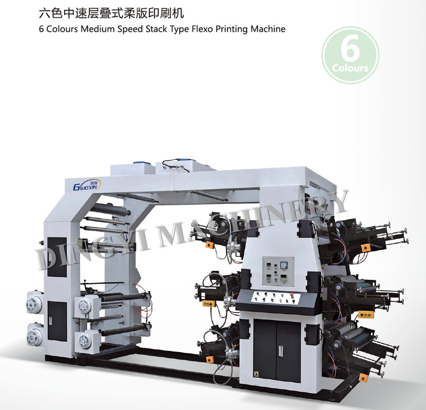 여섯대 컬러 매체 속도 스택 형태 플렉소 프라이팅 기계